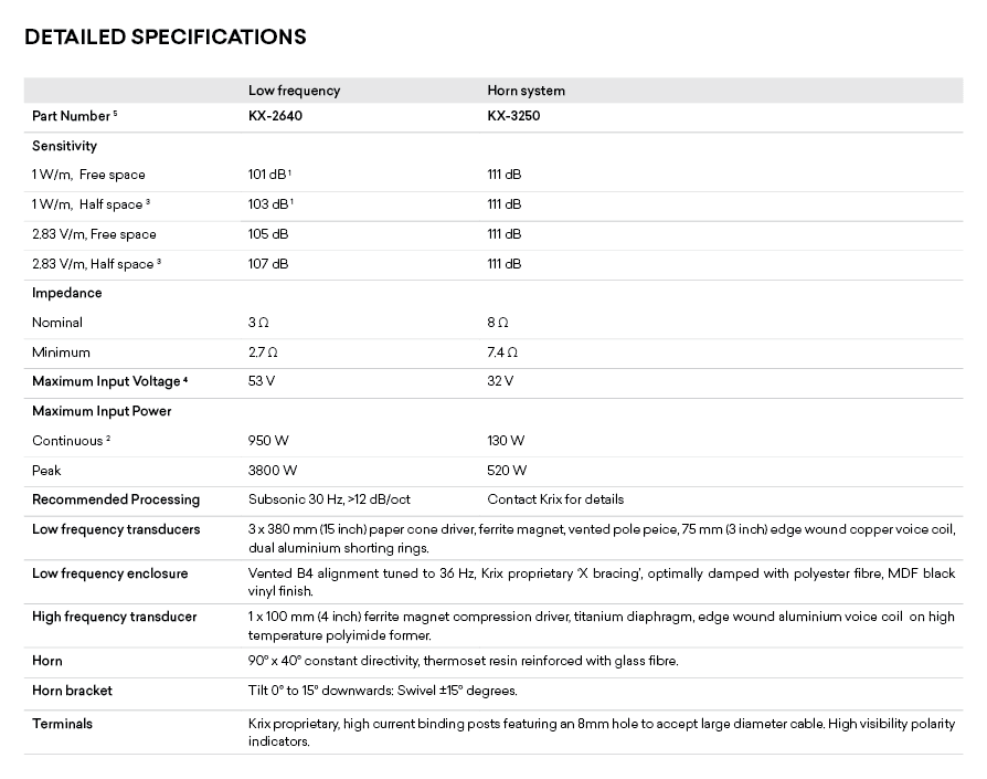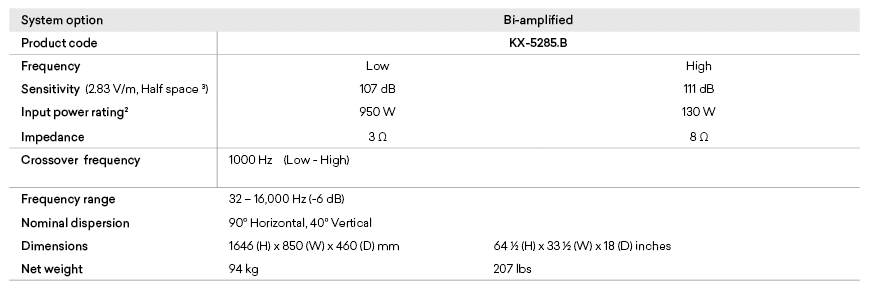 The KX-5285 features triple 15″ bass drivers and a high power, 4″ diameter voice coil compression driver, coupled with a Krix proprietary 90 x 40 degree horn.